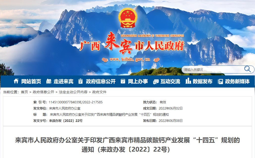 又是精品碳酸鈣粉體引領GDP增長,廣西來賓市“十四五”規劃